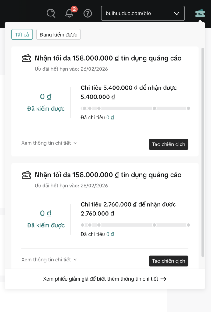 *Quan trọng: Việc tạo số lượng lớn tài khoản có chương trình hoàn tín 158 triệu TikTok là vi phạm chính sách của TikTok, vì thế bạn không nên tạo nhiều Tài khoản quảng cáo để nhằm chuộc lợi từ chương trình này.